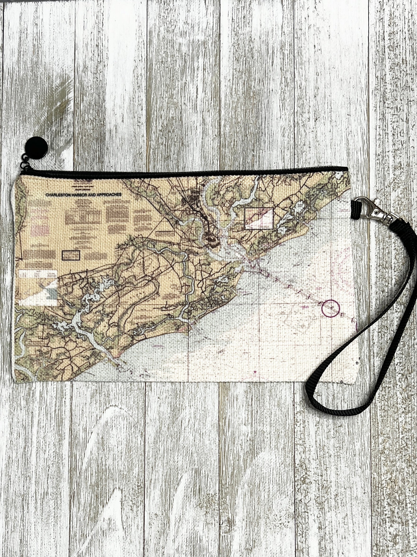 Zip pouch with removable wristlet featuring Charleston Harbor Nautical Chart!