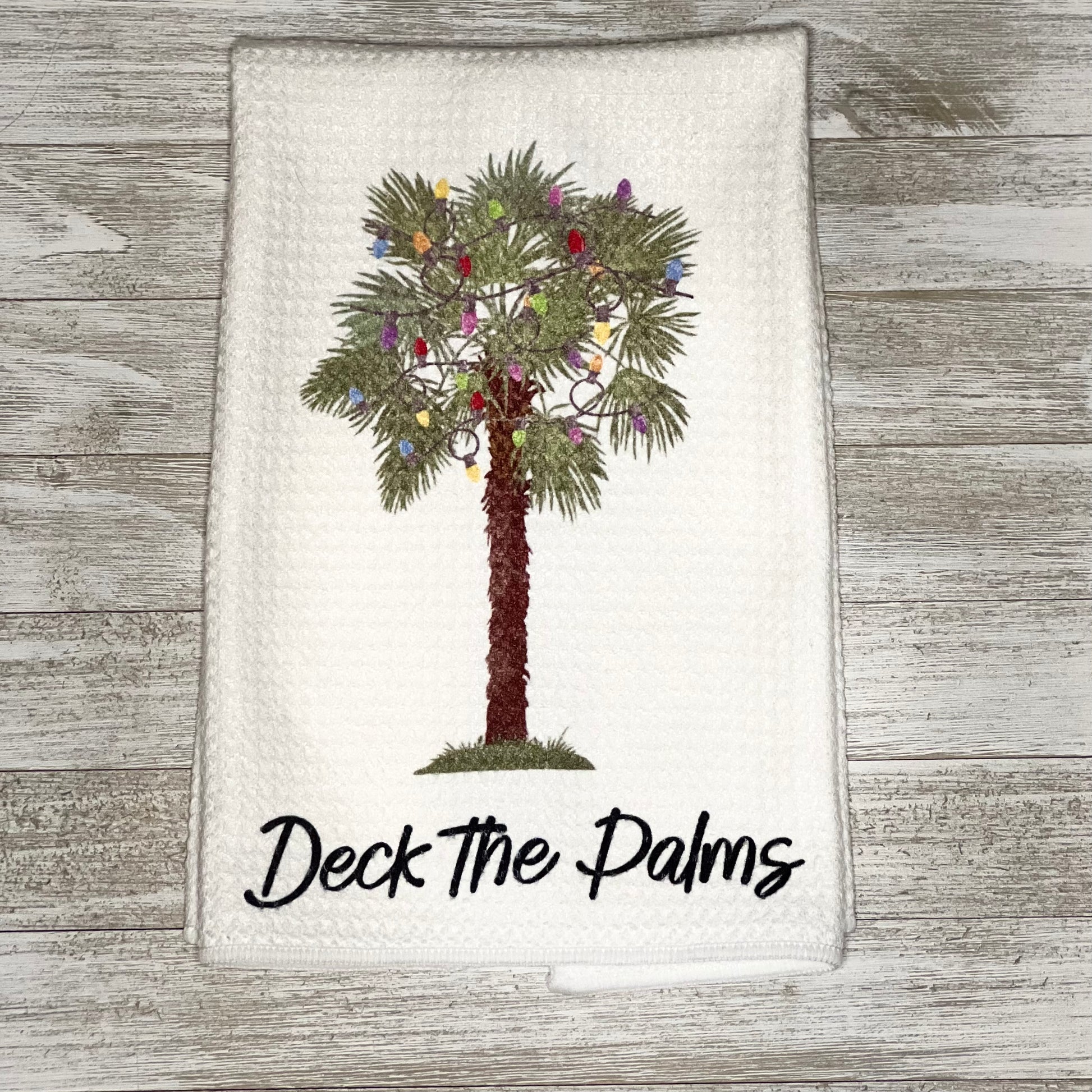 Deck the Palms! - These are printed soft waffle kitchen towels. Make a great gift and a great addition to your holiday decor. Machine washable
