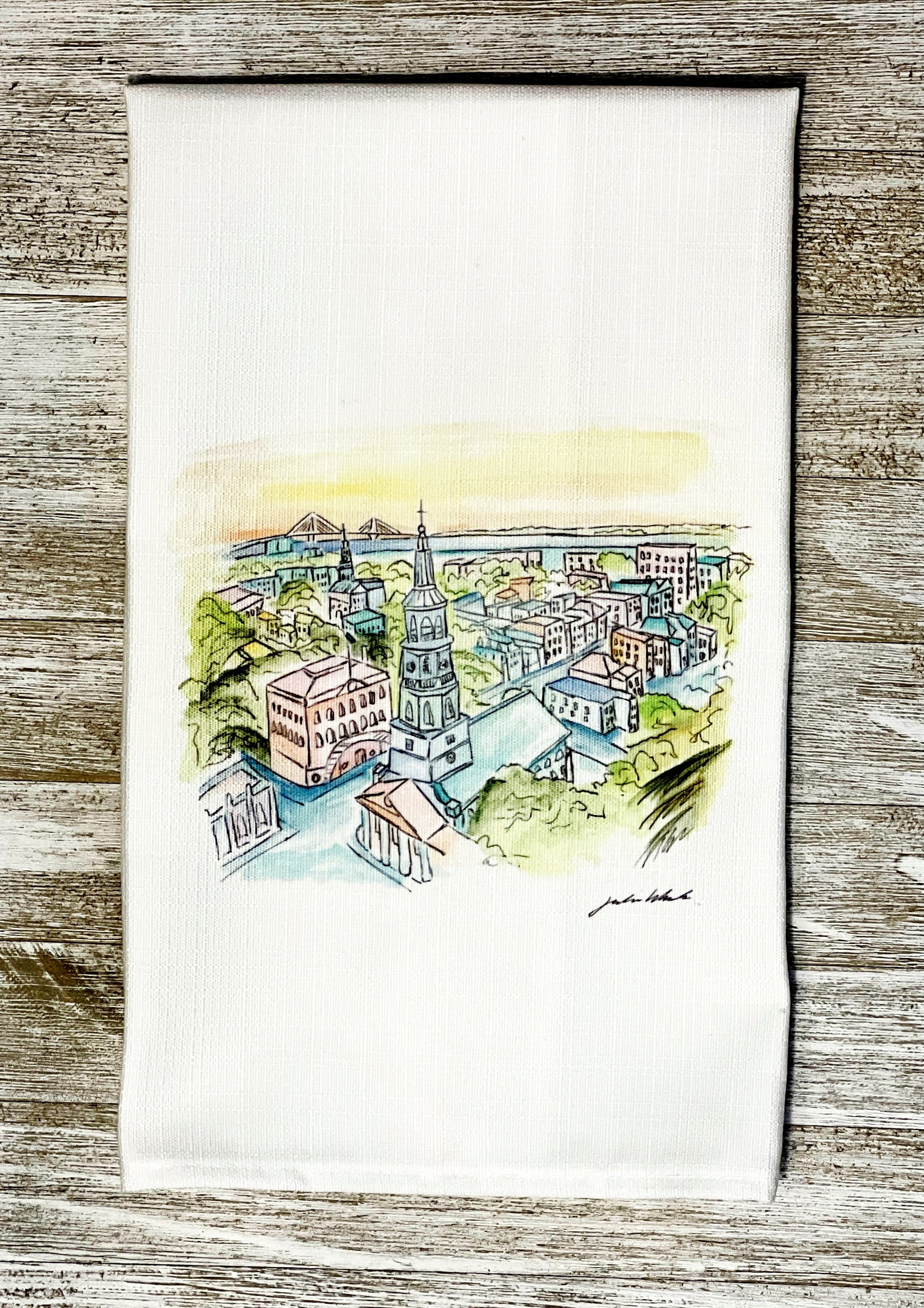 Beautiful WASHABLE tea towels. These feel like linen. Featuring original art by Charleston artist Julie Wheeler. Machine wash and dry. No iron !!