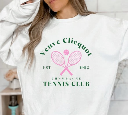 Soft and cozy crew neck sweatshirt. Veuve Clicqout Tennis Club. Unisex sized printed sweatshirt.